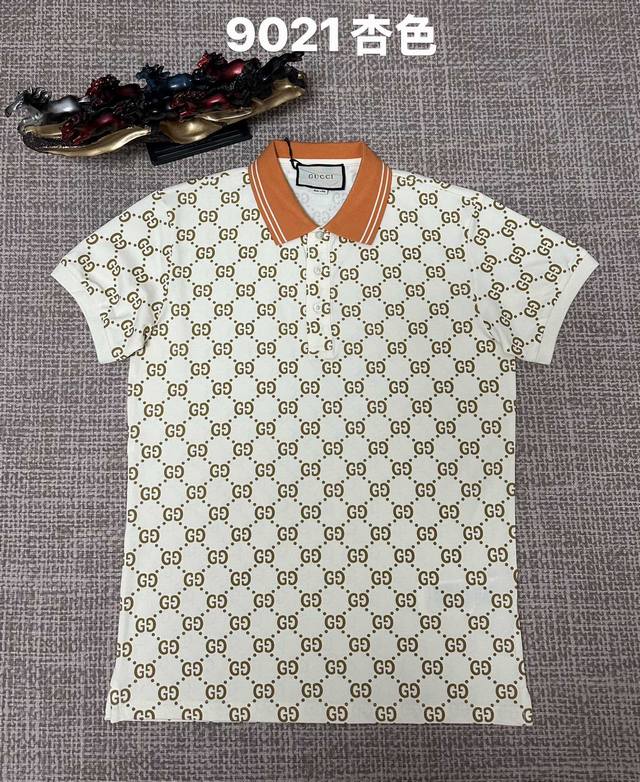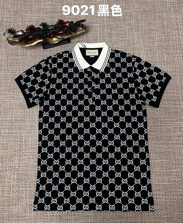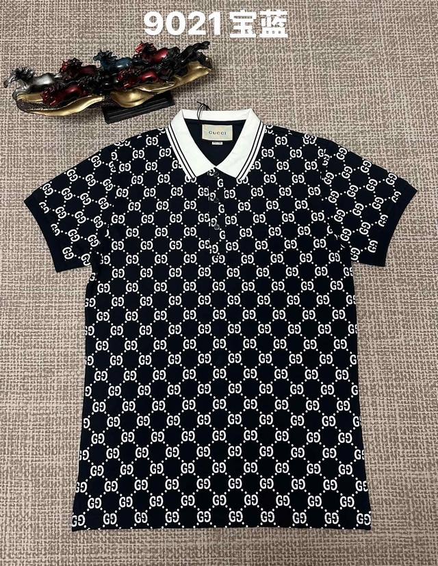 Gucci men's open-chest lapel style, 9021, pure cotton fabric, printed design, available in black, royal blue, green, apricot, and white. Sizes M, L, XL, XL, XLXL.