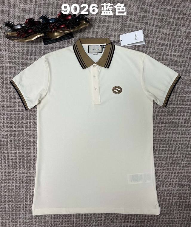 Gucci men's open-chest lapel style, 9026, pure cotton fabric, embroidery, royal blue, apricot, red, sizes M, L, XL, XL, XXL DDD
