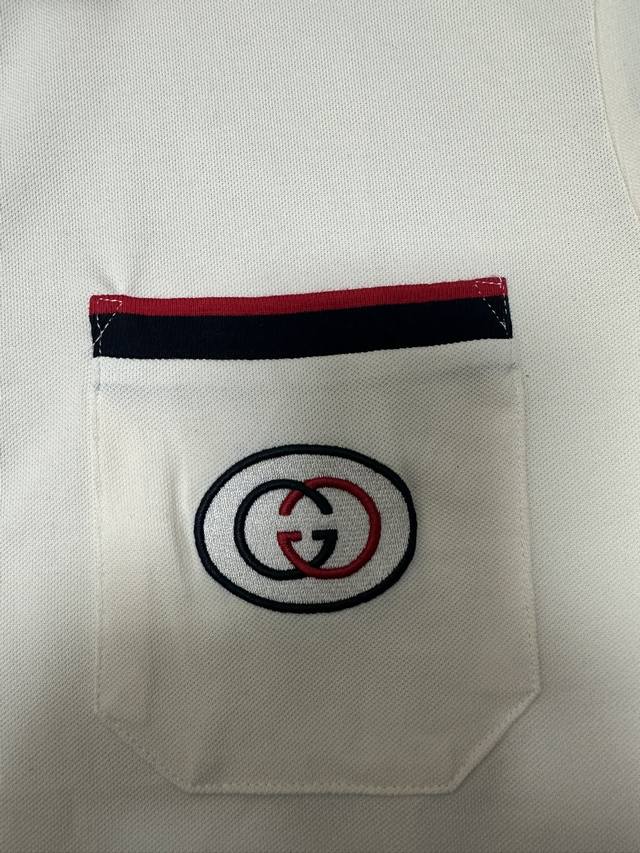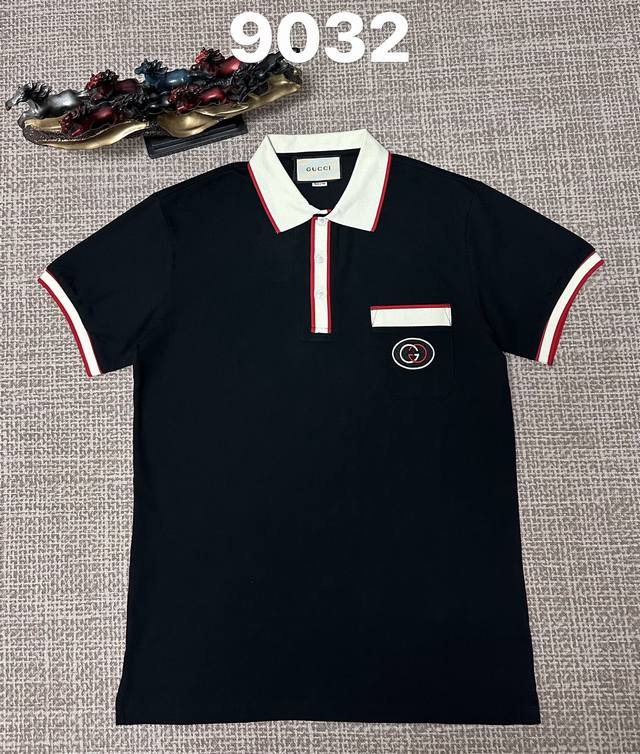 / Gucci men's open-chest lapel style, 9032, pure cotton fabric, embroidered pocke
