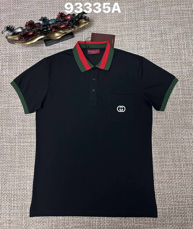 Gucci men's open-chest style with a lapel collar, 93335A, pure cotton fabric, embroidered details, black, apricot, sizes M, L, XL, XL, XLXL DDD