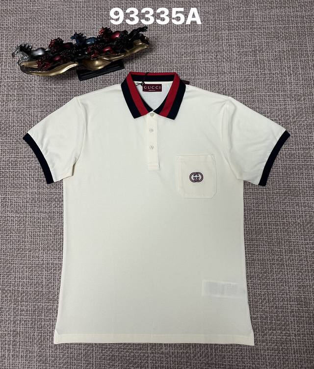 / Gucci men's open-chest style with a lapel collar, 93335A, pure cotton fabric, e
