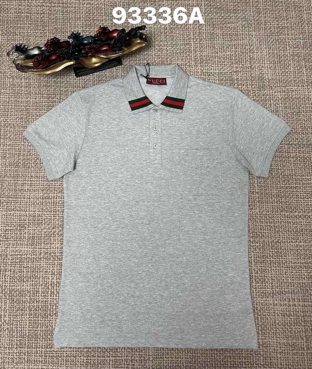 Gucci men's open-chest style with a turn-down collar 93336A, pure cotton fabric, jacquard collar, royal blue, apricot, gray, available in M, L, XL, XL, XXL sizes.