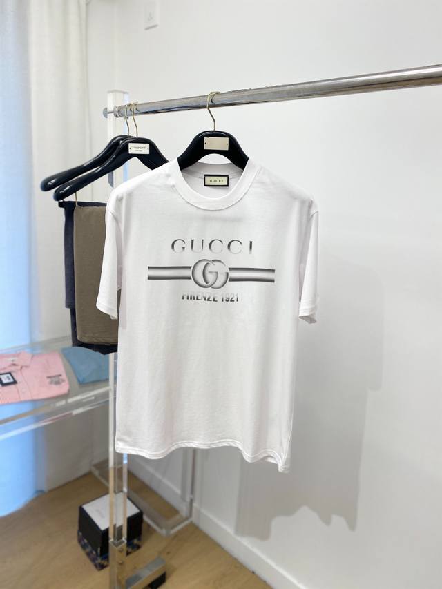 Gucci New Arrival Short-Sleeve T-Shirt, stylish and cool, featuring a graphic logo on the chest, a simple and versatile design. Made of 260g special pure cotton, it's not only crisp and maintains a trendy silhouette, but also comfortable to wear, with a finer weave. Sizes S-XL, loose fit.