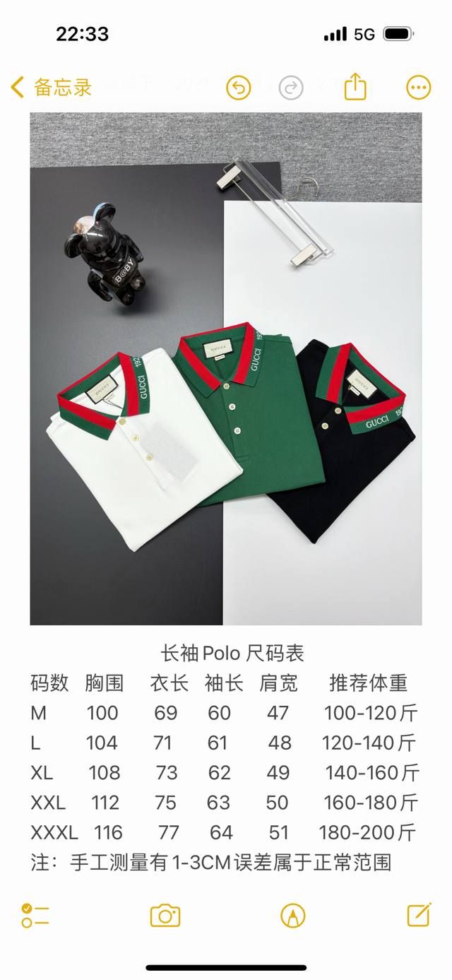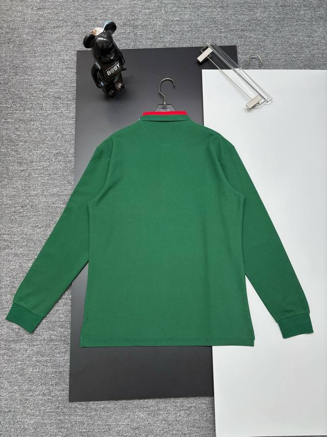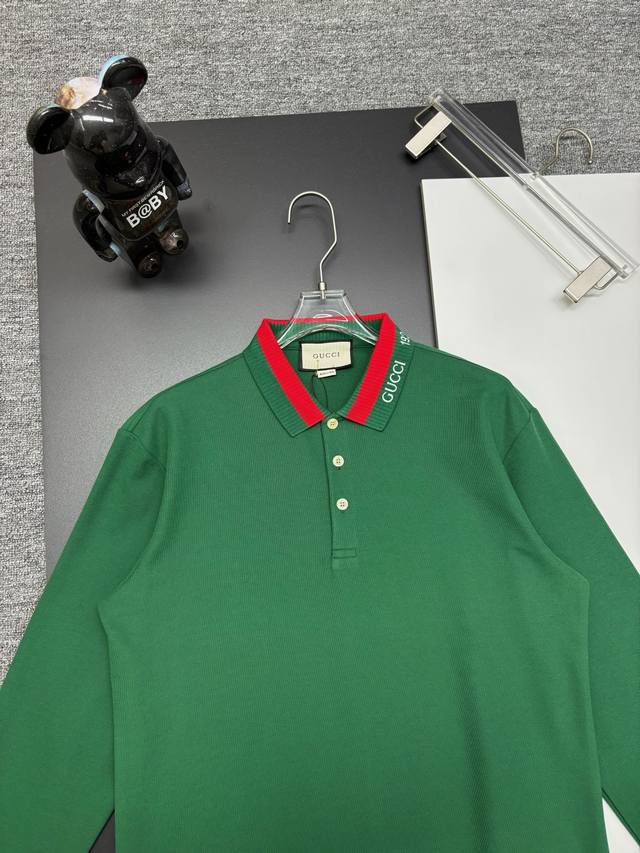 Gucci New Embroidered Long-Sleeve Polo Shirt. Made with 250g pure cotton pique fabric, custom- dyed in the same vat, it feels incredibly comfortable and smooth. The cut is crisp and stylish. Produced by a top-tier brand's OEM factory, featuring imported Behringer embroidery machine for rich and textured embroidery. The ribbed cuffs and collar are made with imported yarn, ensuring long-lasting shape retention. A fashionable and unique autumn/winter style, super versatile and attractive. Suitable for both men and women, a must-have. Colors: Black, White, Green. Sizes: M-3XL.