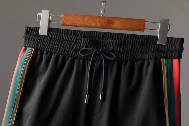 Gucci# New Summer Collection, same style as Hong Kong boutiques. A stylish and sophisticated look for men. Made with imported, custom-woven, high-density, lightweight, four-way stretch fabric that won't pill. The stitching on the trousers is exquisite. See those cool men in magazines wearing casual T-shirts with cool shorts, casual shoes, and hats