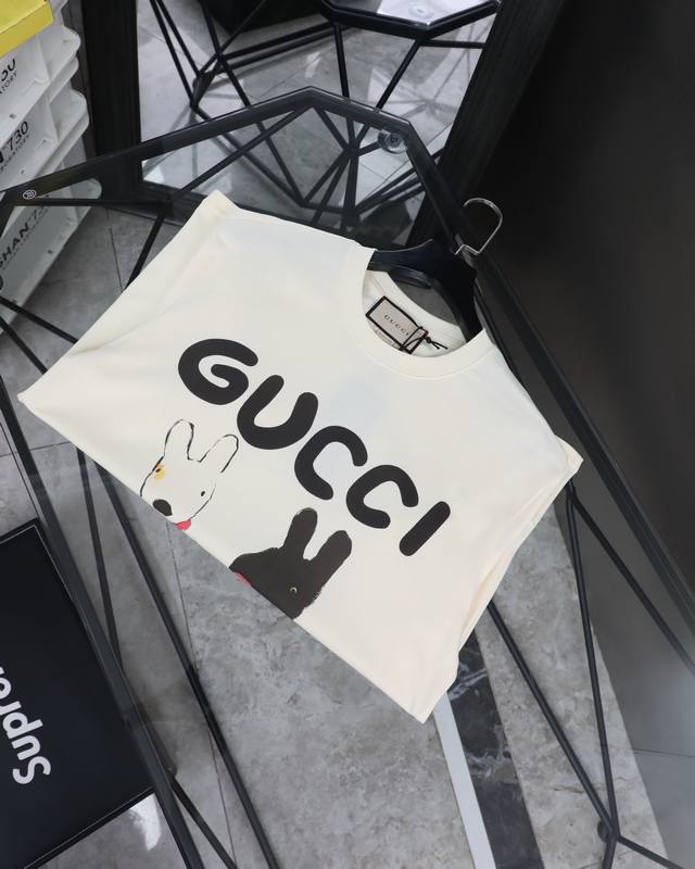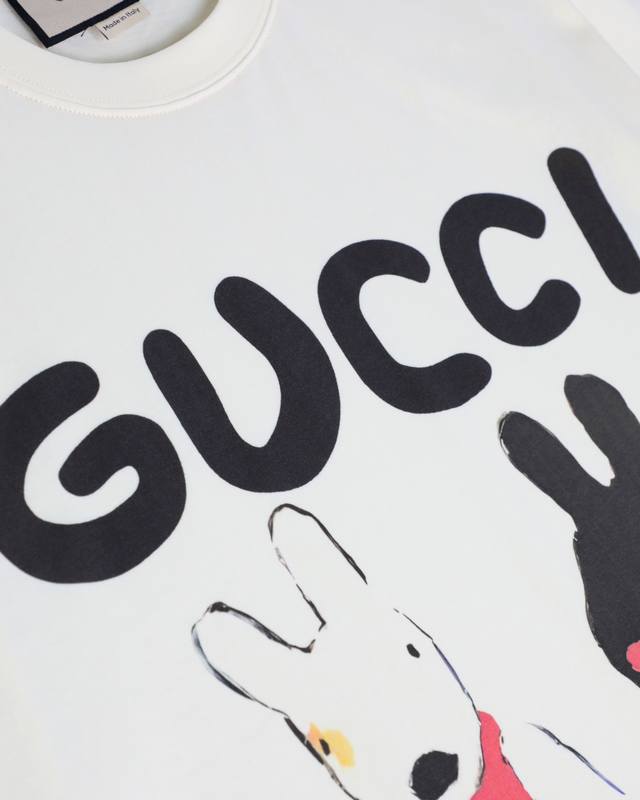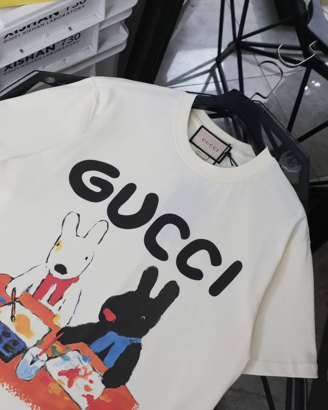 Gucci puppy painting print round neck short-sleeved T-shirt
