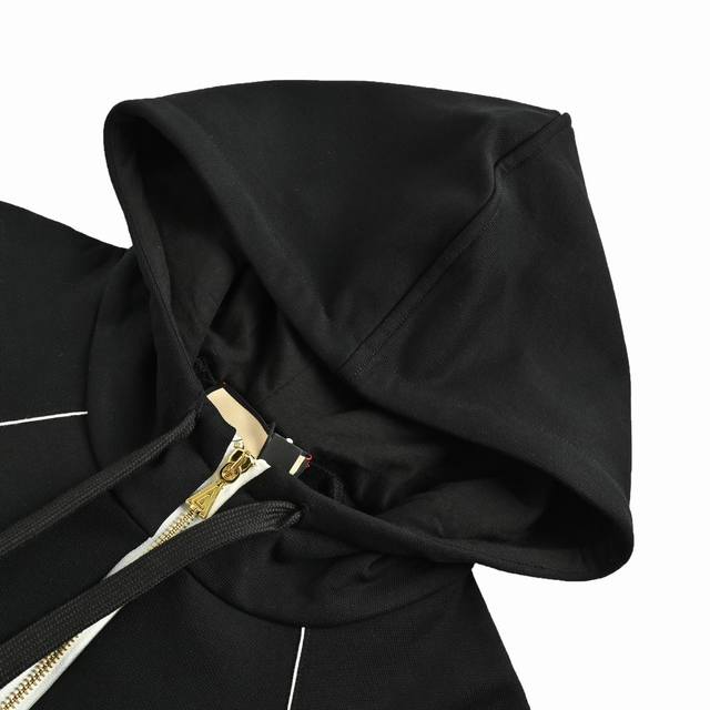 . Made with a 21s/32s/21s double-stranded combed cotton terry base fabric, the same 400g fabric weight as the original. The original grey fabric is weighed and then custom-woven and dyed. The minimum order quantity is 50 pieces. The ribbed fabric is made of 21s/1x1 double-stranded yarn. The waistband features a custom red and green contrasting cotton webbing. The waistband features a high-density embroidered main label. It comes with a 35.5cm triangular matte electroplated lettering slider and a gold-lettered 5# closed-end zipper. It also comes with a brand new green hangtag and a care label. The zipper installation requires a skilled sewing technician to achieve a smooth and beautiful finish