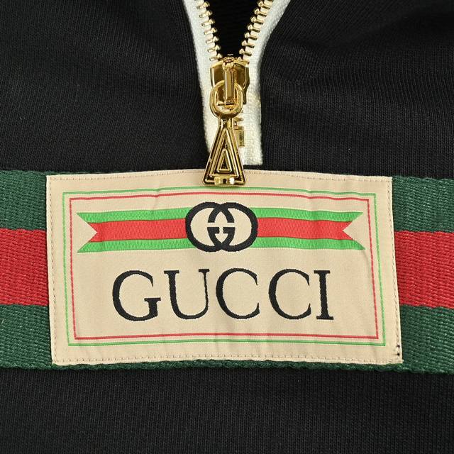 Gucci Red and Green Web Half-Zip Long-Sleeved Hooded Sweatshirt