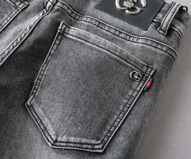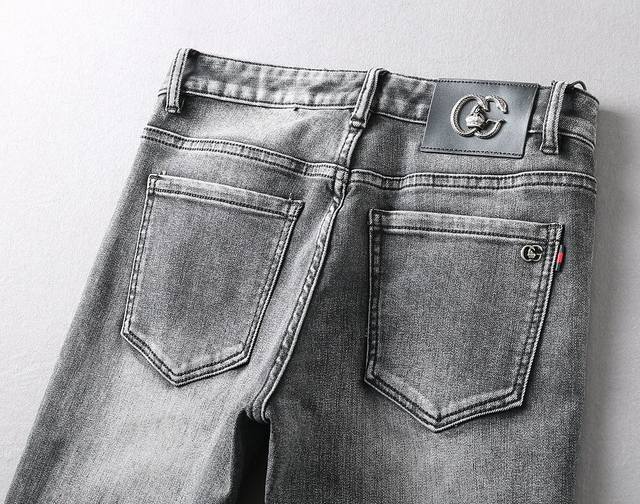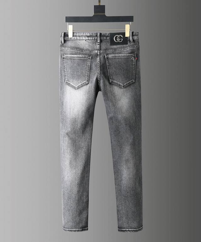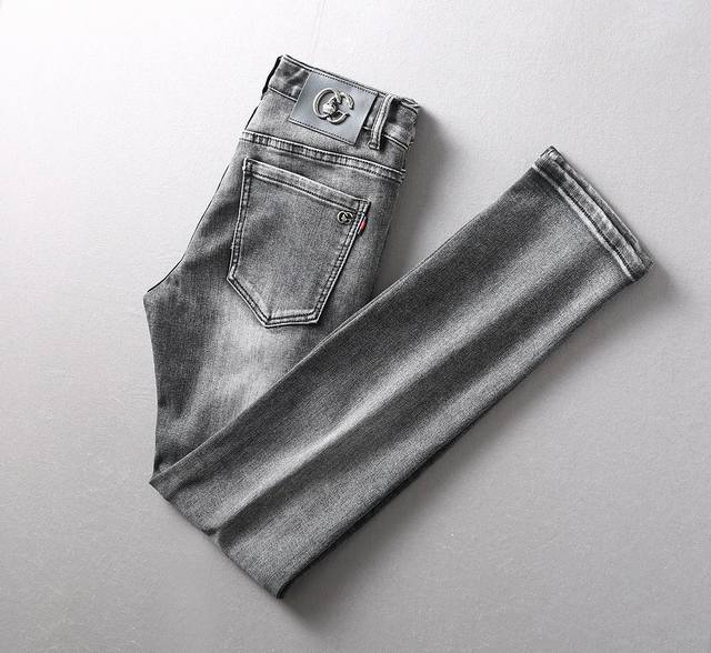 Gucci skinny jeans are incredibly comfortable and understatedly luxurious, making them a very classy choice. The style and cut are impeccable; they look exquisite on. Made from top-quality Turkish cotton, these are truly luxurious casual pants. The high-quality denim, produced through heavy washing, is exceptionally soft. The straight-leg cut is flattering on all body types and creates a stylish silhouette. The waistband features a silver embellishment, a sophisticated design that exudes luxury. Sizes 28-38. (DDD)