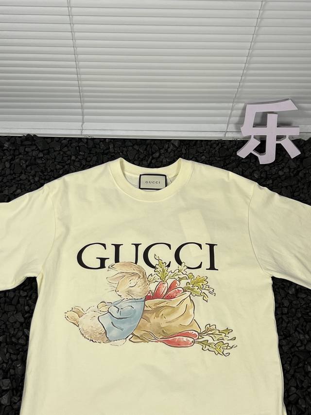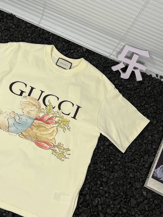 Gucci solid color pattern letter logo print round neck loose casual short-sleeve