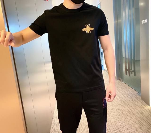 Gucci Spring New Arrival Short-Sleeve T-Shirt, made of imported premium mercerized cotton, smooth and breathable, with a slim fit and novel design featuring top-grade Austrian diamond embossing . Hot Selling Item: Sizes M to XL.