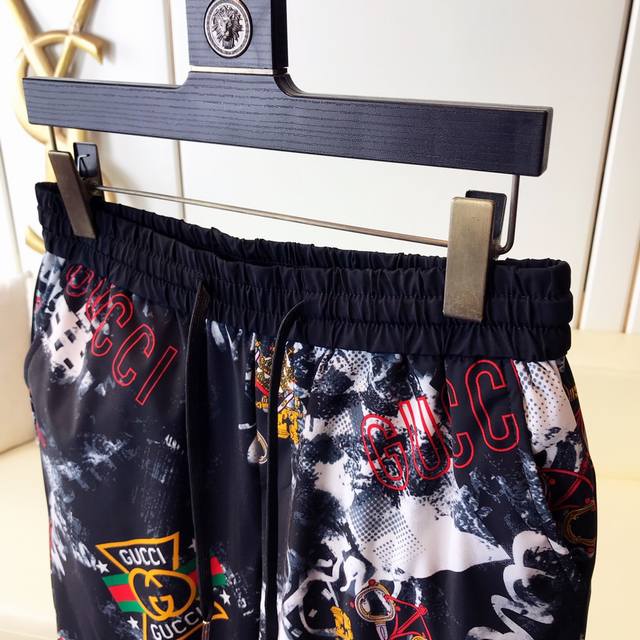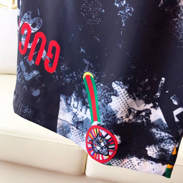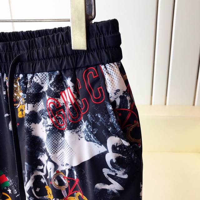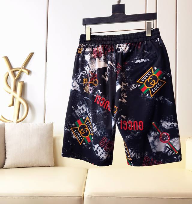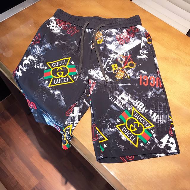 Gucci Spring/Summer Collection, New Boutique Beach Shorts. Custom-made original 65% cotton + 35% polyester fabric, smooth, soft, comfortable, and breathable. Printed front and back panels, custom-supplied hardware and accessories, showcasing the brand's charm. Sizes: M-4XL