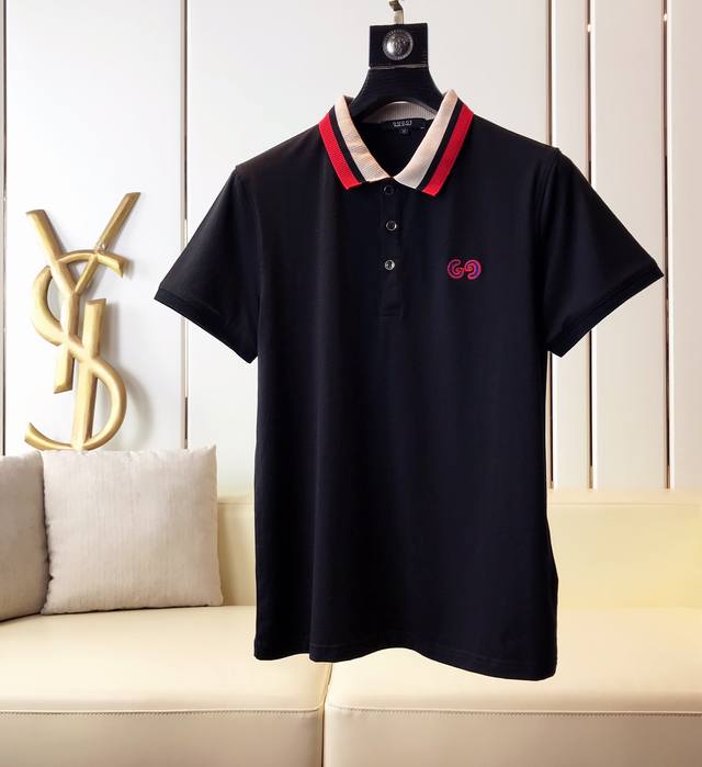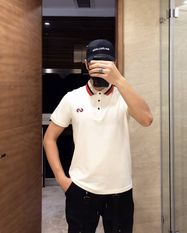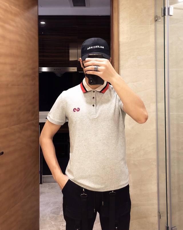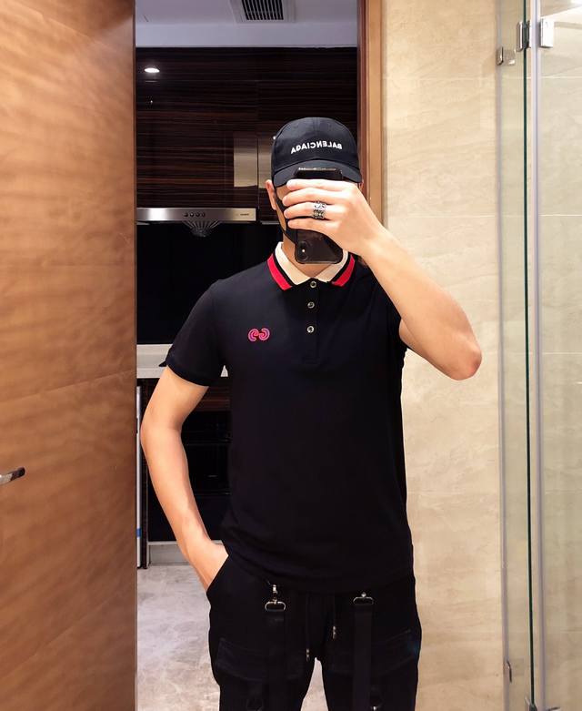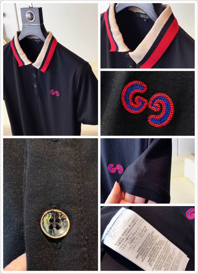 Gucci Spring/Summer Mercerized Cotton Collared Short-Sleeve T-Shirt, a highly anticipated release. High-end quality, fashionable design, custom fit, unique embroidered pattern. Details showcase the brand's premium feel. Developed according to the original design. Sizes: M-3XL.