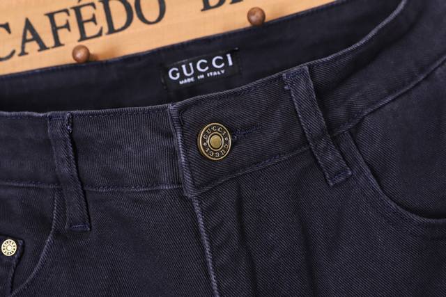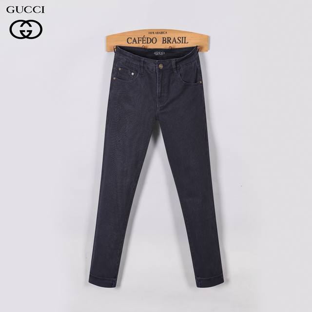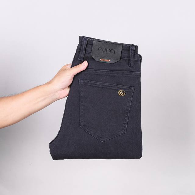 Gucci Stretch Slim Fit Straight Leg Jeans, All Seasons! High-quality stretch jeans that are also very comfortable. Super stretchy and stylish jeans! Heavy wash stretch! These jeans will amaze you with their ingenious design!! A pair of jeans with a raw fabric cut, a light color, and unique charm. Made from high-quality cotton fabric, featuring distressed details and appliqu