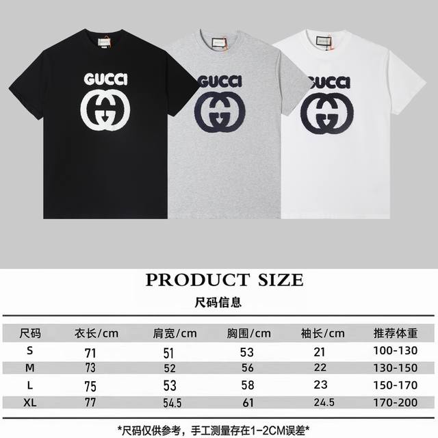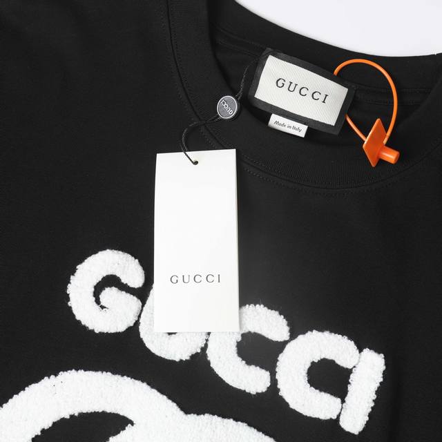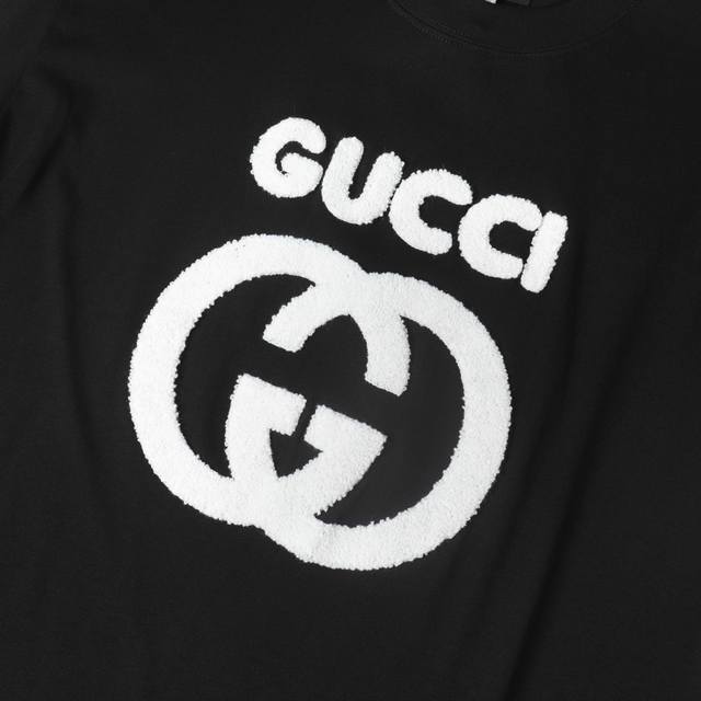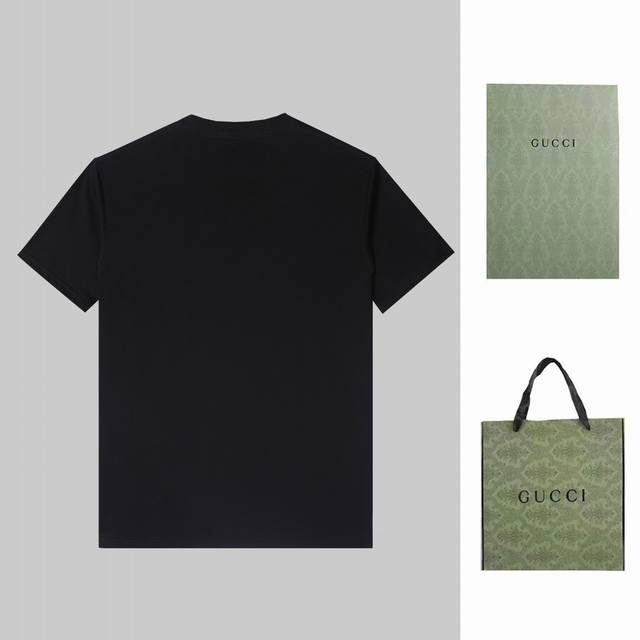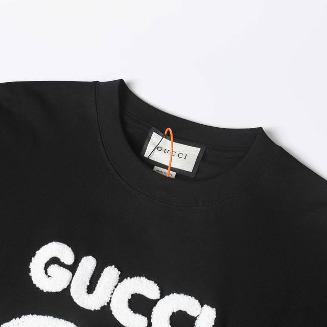 Gucci toothbrush embroidered short sleeves, customized 32-count double-yarn pure cotton, weight 280G, the letter logo on the front piece adopts advanced toothbrush embroidery technology, comfortable, breathable, soft and not easy to deform, precision screen, good three-dimensional sense, one-to-one original auxiliary materials, three complete labels, same style for men and women, official website quality, a must-have every summer