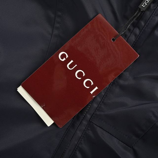 Gucci Twill Nylon Windbreaker Collar Hooded Jacket is made from a tightly woven