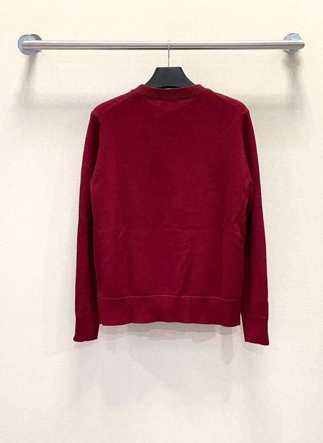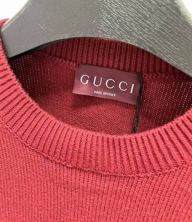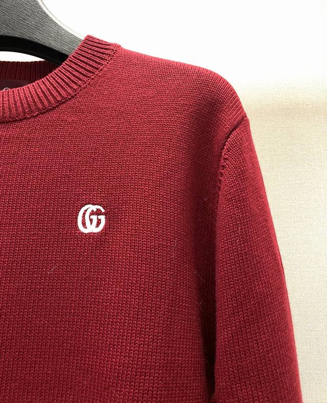 Gucci Year of the Horse Limited Edition Red GG Embroidered Wool Knit Sweater. Made with high-count Merino wool yarn, the sweater is combed to remove impurities and then woven on a 12-needle circular knitting machine to create a waffle texture. The texture is even and soft to the touch. The yarn is pre-dyed and color-fixed to ensure a rich red hue and prevent fading. The neckline, cuffs, and hem feature ribbed edges with a 1*1 elastic structure, treated with a high-temperature setting process for excellent resilience and resistance to sagging. The double G logo on the left chest is hand-embroidered using fine yarn in the same color family and a flat embroidery technique. The stitches are fine and even, and the logo outline is precise and symmetrical. The fabric is comfortable and soft, with a consistent color that allows for easy matching with other garments, creating a stylish look suitable for various occasions. Custom accessories included, all three tags included. Unisex! Sizes: S-XL