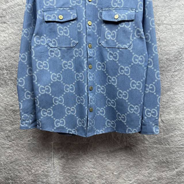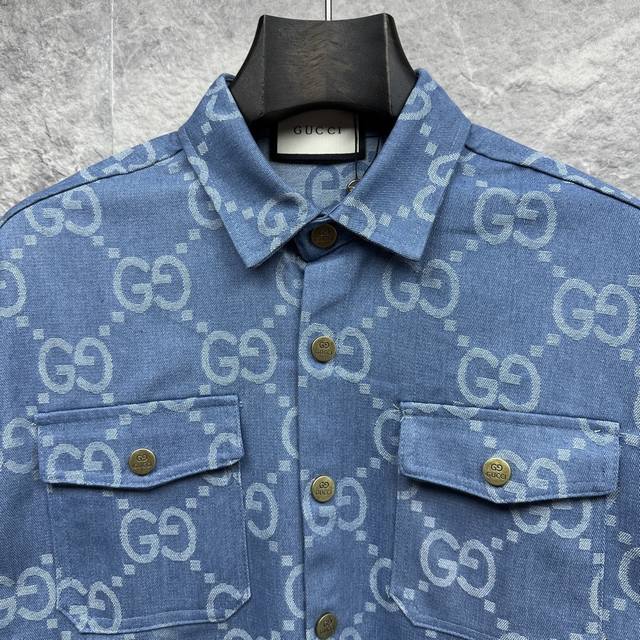 Gucci's new 2025 jacquard all-over logo couple's denim jacket. Made from heavy-duty washed cotton denim, it's soft, wide, and comfortable next to the skin. A stylish and versatile denim jacket for both men and women. A must-have for fashion trendsetters . Comes with a tag, collar, and all-in-one washable and wheat-blend labels. Available in light blue, dark blue, and khaki. Sizes: Medium to Xxxl.