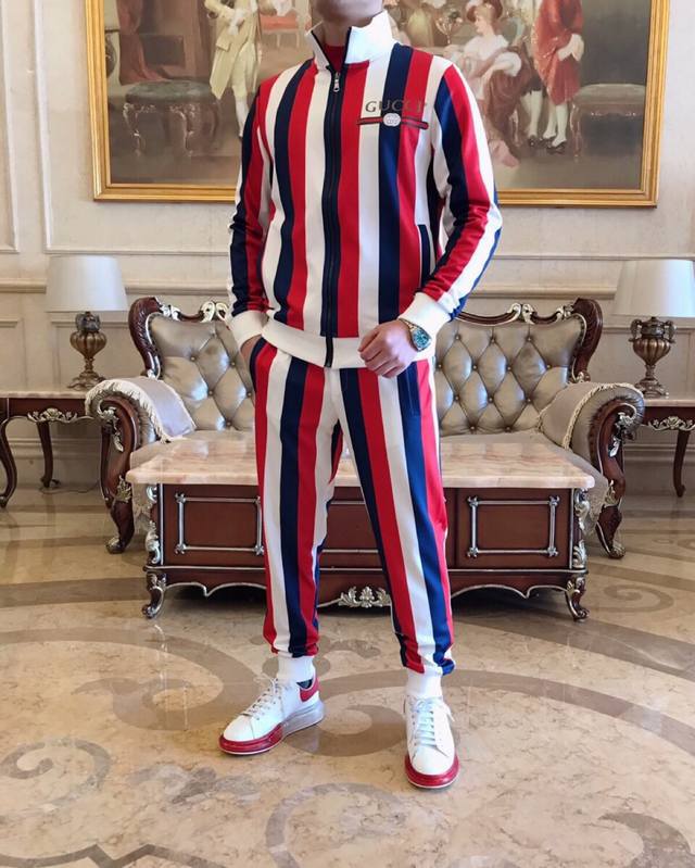 In stock, supports dropshipping. Gucci Spring/Suit, new arrival! Highly recommended! Top quality! Perfect replica! Welcome to compare details with boutiques! Recognize the highest version on the market! Soft and breathable fabric! Excellent texture! Real product photos, top-quality goods! Simple and elegant! Super luxurious aesthetic, high-density stitching, meticulous attention to every detail. Can be paired with any fashion item. Genuine top-quality original design. Super model, 176cm, 143kg, wears M. Sizes: M-XL. European sizes run large, can fit up to 200kg.