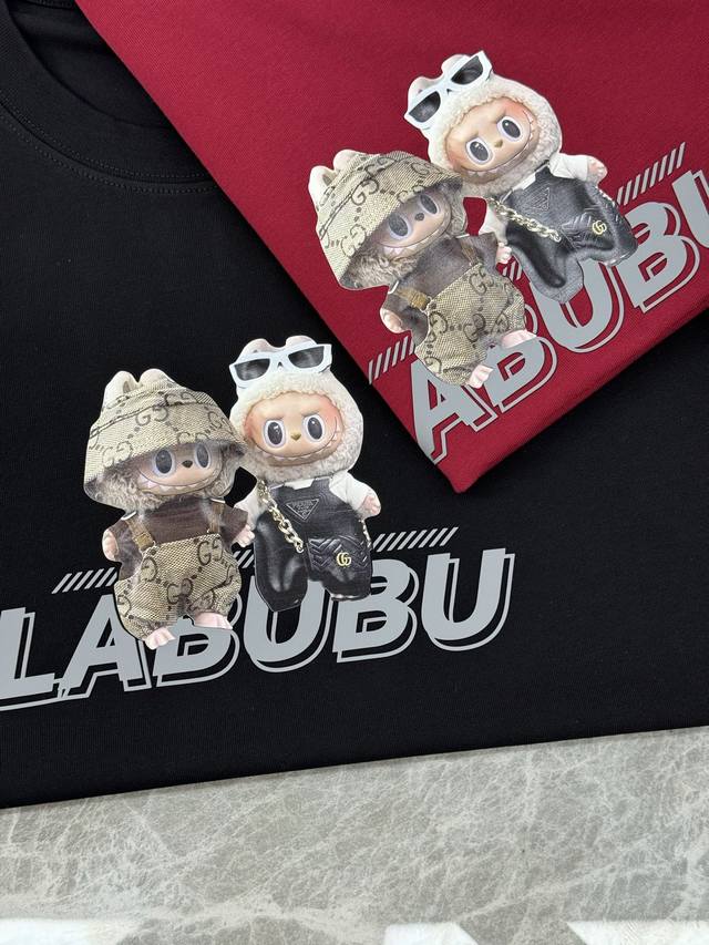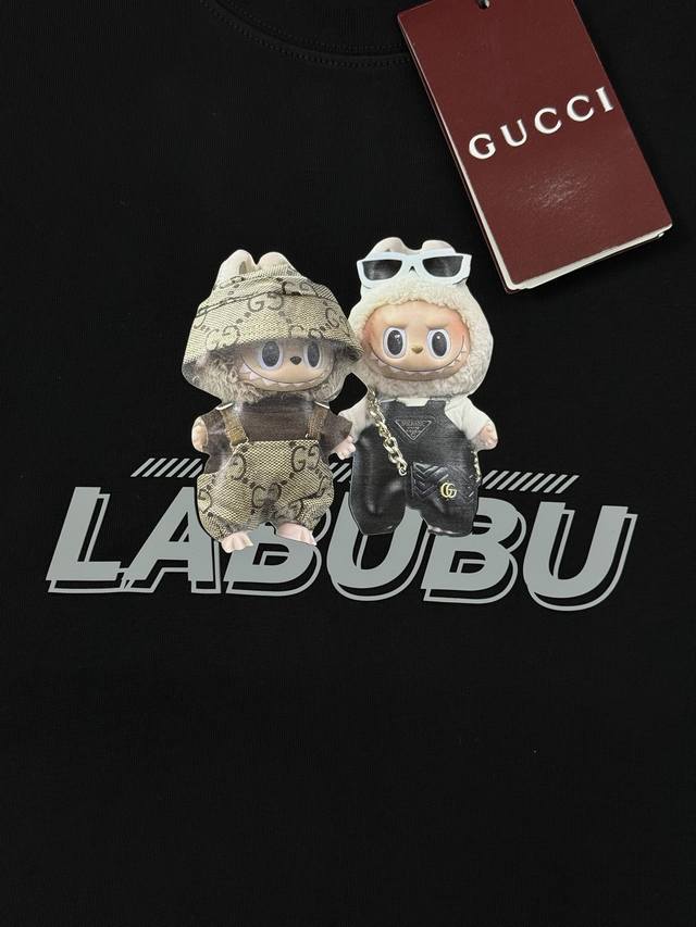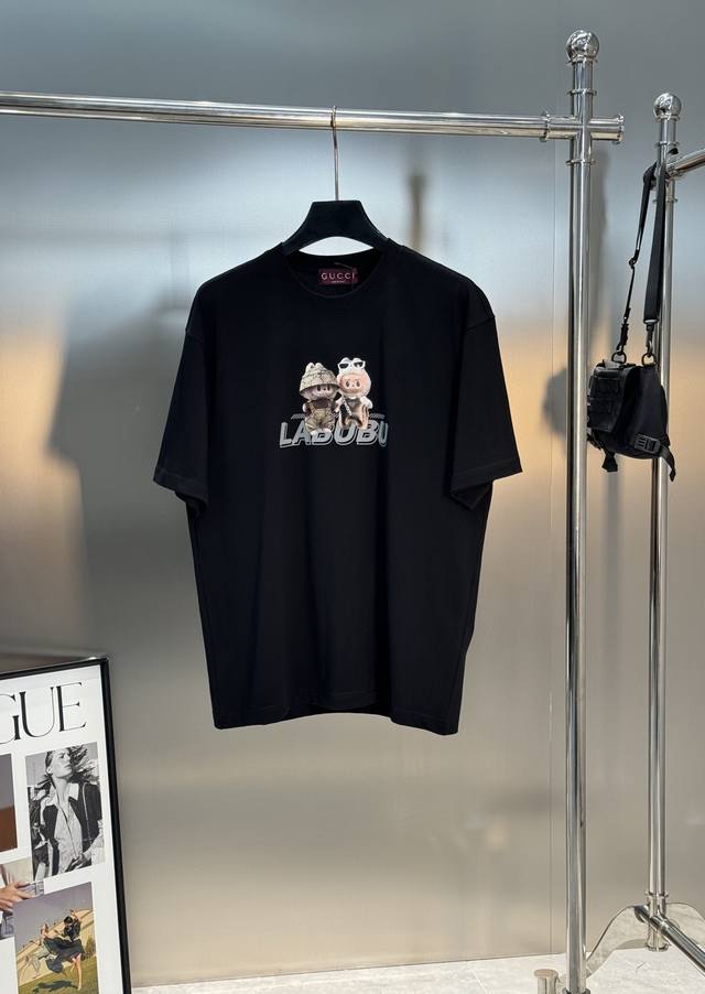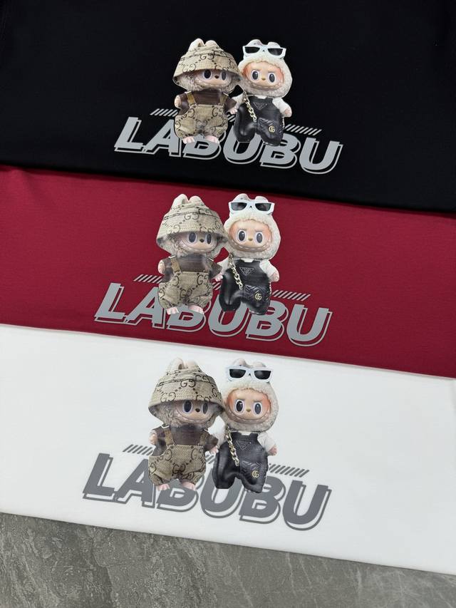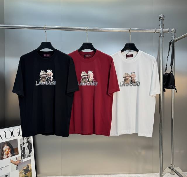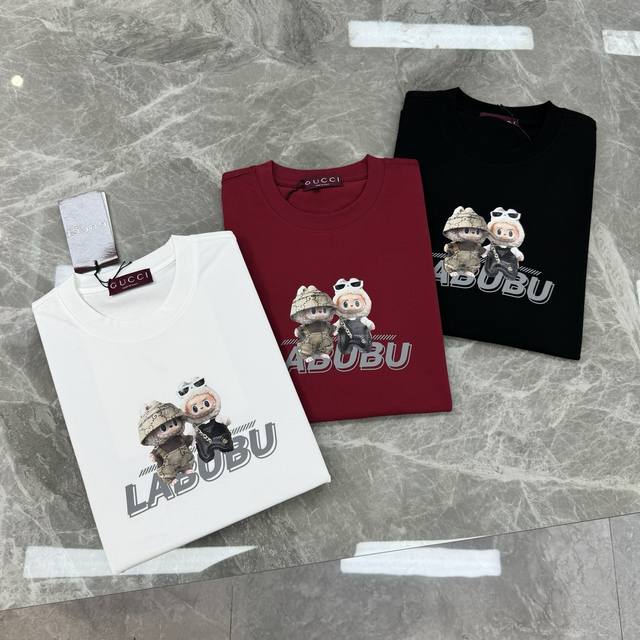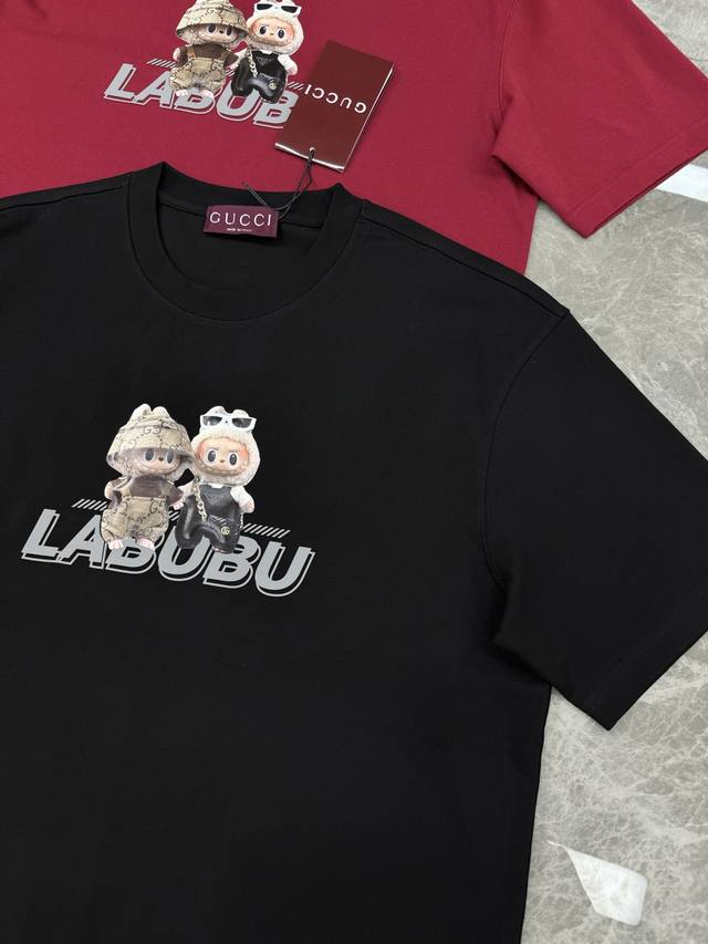 Labubu Cartoon Print Gucci New Short-Sleeve T-Shirt. Unisex! Made with 280g Xinjiang cotton Sorona fabric, treated with Sorona technology for a cool touch in summer. The garment is ready to wear. For those who prefer a higher quality fit, this is the best choice. The tailored cut is flattering and hides any unwanted bulk. Print details: The trendy Labubu logo on the chest adds an artistic and fashionable touch, while the thick, heat-sealed lettering creates a picture wall effect, making the garment visually striking. Simple and stylish, it exudes a strong sense of design! The wildly popular Labubu is here! Colors: Black, Red, White. Sizes: S-3XL. Recommended size: L for 175cm, 145kg.