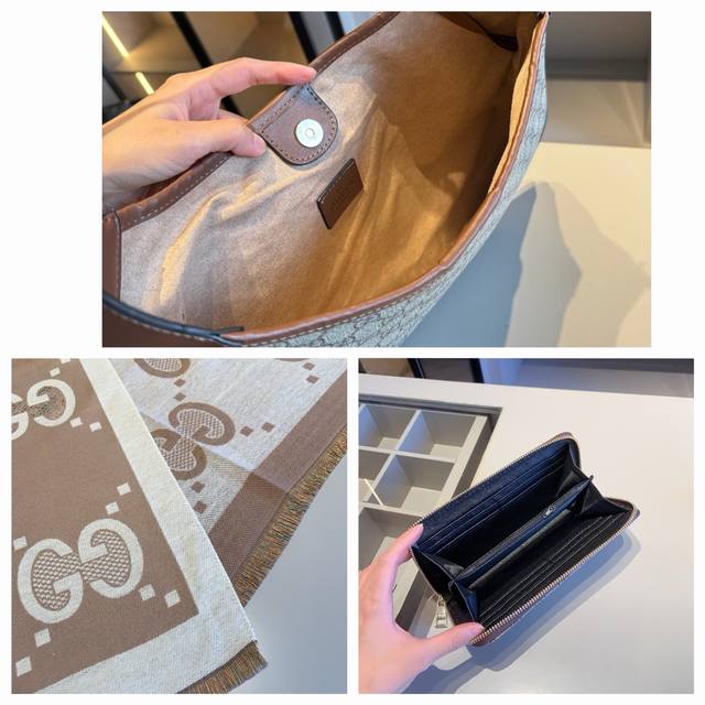 New Arrival Combo! Brand New Series Combo X869 Gucci Underarm Bag + G Scarf + G Wallet Size: Travel Bag: 46*29*21 Wallet: 20*10 Product Introduction: New Gucci boutique combo! New Gucci Hobo large underarm bag! Comes with a small inner pouch for extra capacity! Can be carried by hand or over the shoulder! Looks amazing with the new Gucci scarf! Gucci monogram single-zip wallet! Perfect for any occasion!