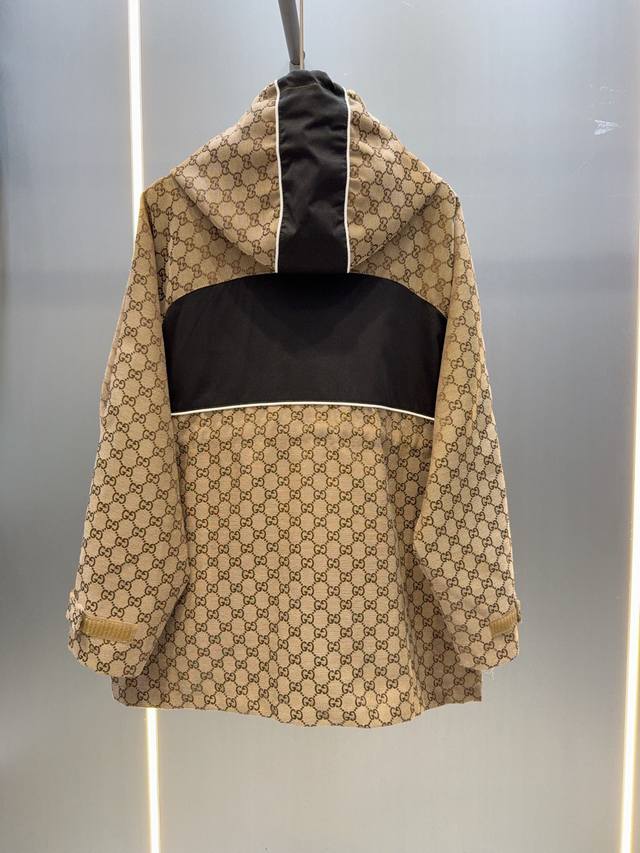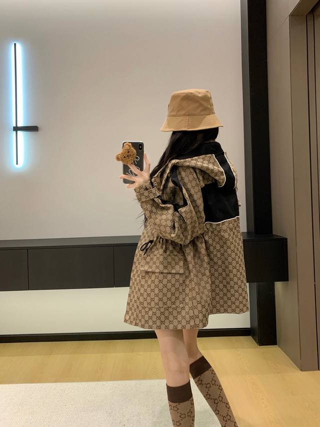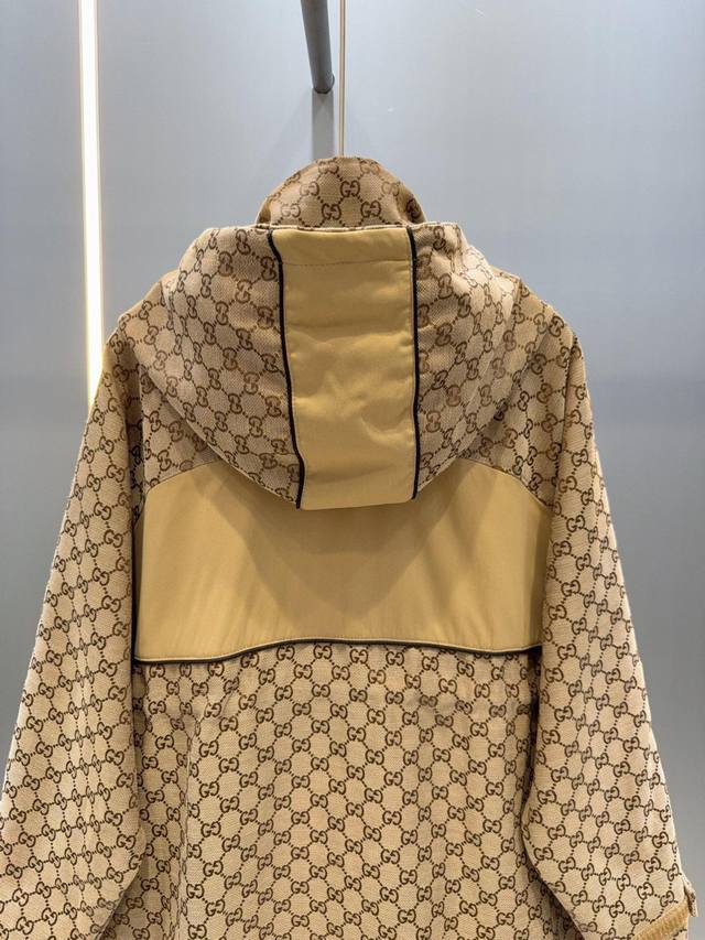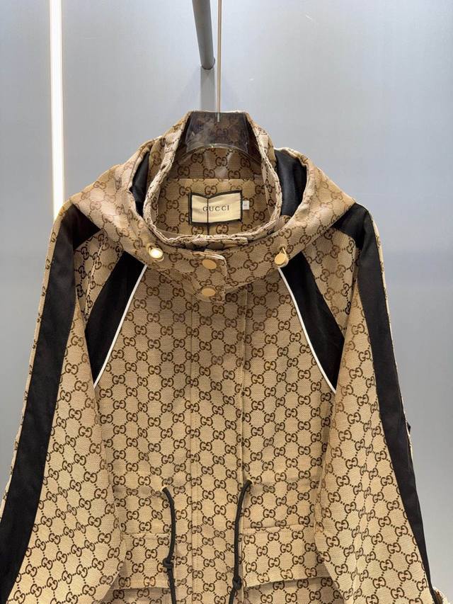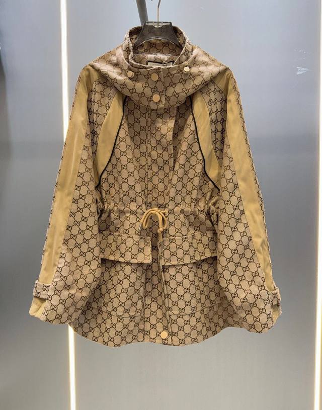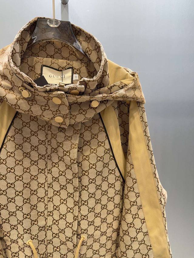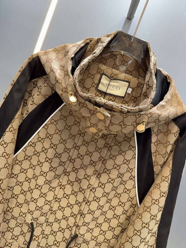Gucc* Gucci 25Ss new jacquard-patterned trench coat with workwear hood.