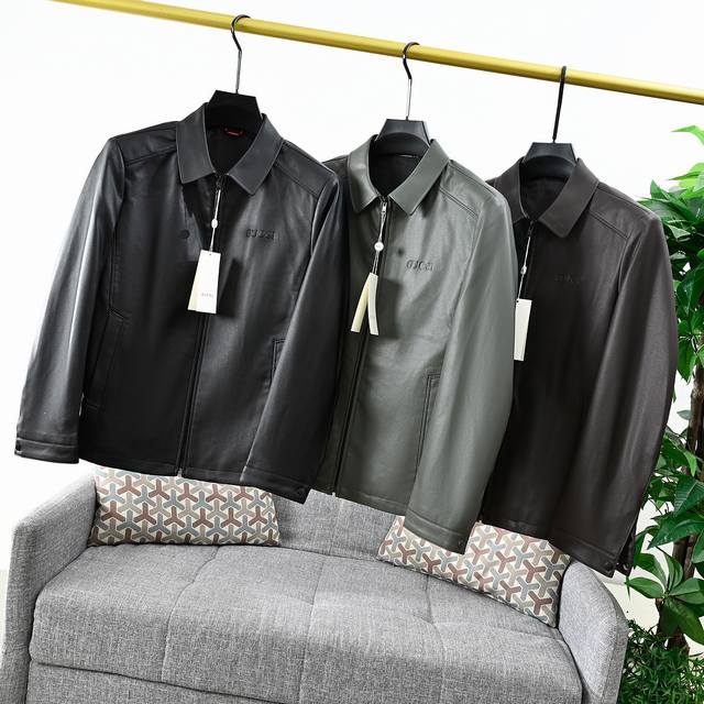 New Arrival, Order Number: 2008# Gucci 2025 Lapel Casual Leather Jacket/Business Jacket. Made of high-quality PU leather, close to genuine leather in feel. Durable, breathable, soft, comfortable, and windproof. Trendy, versatile, and easy to wear. Retains its shape even after repeated washing. The placket uses imported material identical to the original. Glossy and delicate, the basic silhouette design is three-dimensional and crisp. Comfortable and easy to match, with exquisite workmanship and attention to detail. Excellent fit and simple style, yet with intricate details. Full and delicate texture, natural and clear grain, soft and bright color. Shipped from a top domestic OEM factory, every stitch showcases high-end quality. Clever tailoring fits the male body curves perfectly. While many leather jackets are generic, truly sophisticated style is rare. Wearing this, you'll be the most stylish person on the street. Colors: Black, Army Green, Brownish Red. Sizes: Shoulder Width, Chest, Length, Sleeve Length. M: 49 105 76 61; L: 50 110 77 62; XL: 51 115 78 63; 2XL: 52 120 79 64; 3XL: 53 125 80 64; 4XL: 54 130 81 65; 5XL: 54 135 82 65; 6XL: 55 140 83 66; 7XL: 56 145 84 66; 8XL: 57 150 85 67. (Purely manual measurement, there may be a 1-2 cm error!)