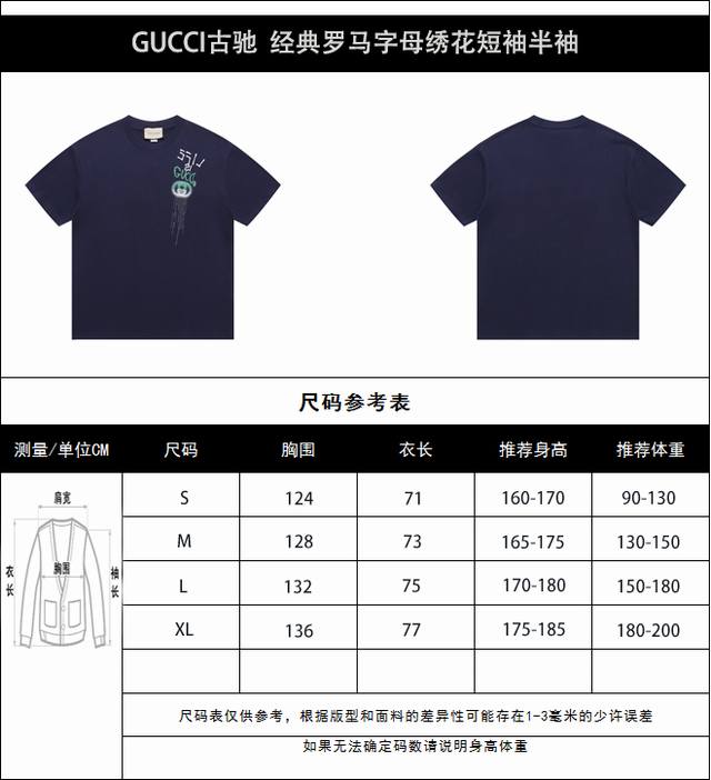 Gucci classic Roman letters embroidered short sleeves and half sleeves