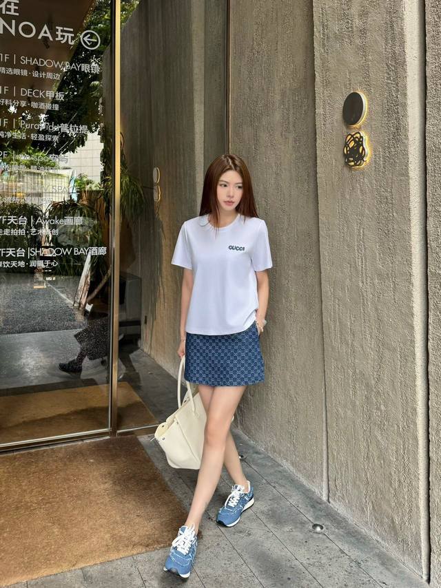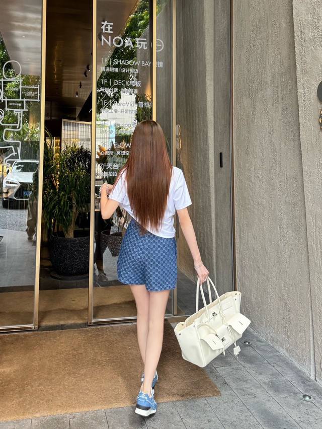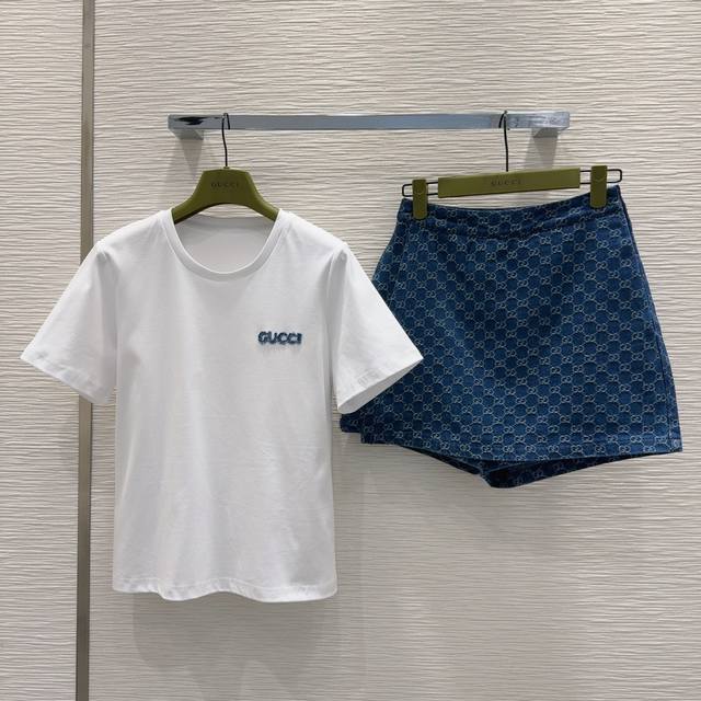 New set Gucc* Gucci's new embroidered short-sleeved jacquard culottes set Basic