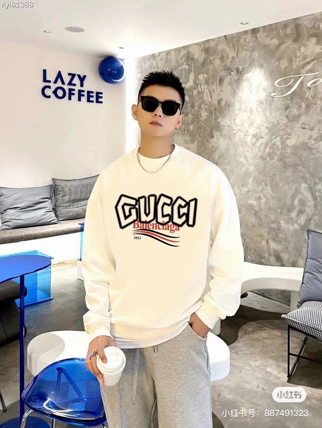 Gucci & Balenciaga's latest collaboration, a casual crewneck sweatshirt. This versatile classic is perfect for layering or wearing alone. We only produce high-quality pieces, each piece meticulously detailed. Compare to any other product on the market.