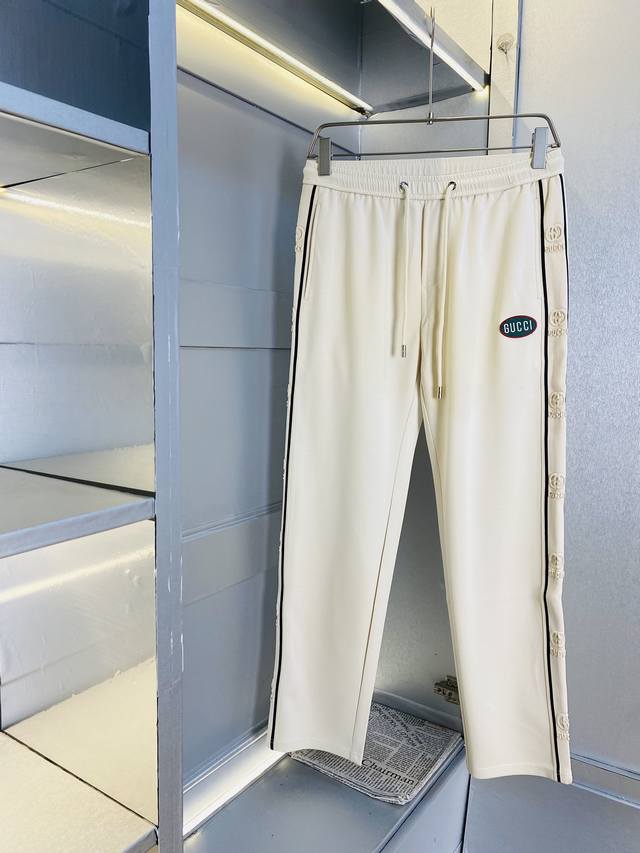 Official website original stock, fits up to 220 lbs. Gucci simple and stylish early spring casual sweatpants, elastic waistband, straight leg, very comfortable, understated yet luxurious, very classy. The style and cut speak for themselves, looking exquisite on. Truly top-quality material, truly a hall-of-fame casual elastic waistband, made from Turkish cotton to produce the most famous denim, of exceptional quality. Heavy washing makes the pants very soft! The straight leg design is flattering on all body types, absolutely stylish, a designer piece with an extremely luxurious feel. Sizes: M-4XL