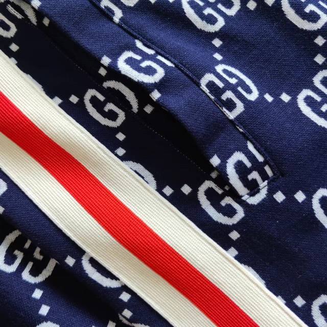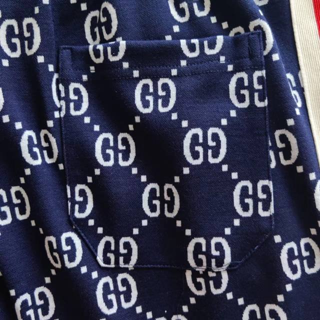 Real photos and details + size chart. Gucci classic jacquard logo-printed trousers. The Gucci series set is incredibly popular. The fabric is custom-woven and dyed with an all-over logo print. The entire garment is precisely cut, with the "G" logo aligned on both sides of the placket, unlike the misaligned "G" logos found in fast-food versions on the market. The sides feature custom-woven beige webbing. The fabric is soft and delicate, with all custom-made accessories. The inner pockets are edged, the main label is hand-stitched, and the zipper pull is a custom-molded bright-colored large pull. The stamped logo is clear. Genuine, top-quality. Size: Xs-L.