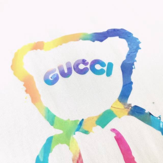 Real Shot Details + Size Chart Ddd Gucci Colorful Bear Letter Logo Print Short-Sleeve T-Shirt Ddd Fabric: Made of 100% pure cotton knit fabric, custom-woven and dyed! It uses a highly sensitive special color. Our requirements for the fabric are that it must withstand UV light and D65 lighting. Imported dyes are used, and the color matching alone took half a month. Ordinary dyes cannot achieve the same color depth and richness. The fabric cost is twice that of ordinary colored fabrics, making it extremely expensive! Ddd Print: Uses imported plastisol, no rough edges, clearly visible print lines, print details as shown in the pictures, thickness and texture completely reproduced, high-standard stitching and workmanship, impeccable! Kq45 Ddd Size: Xs-L DDD