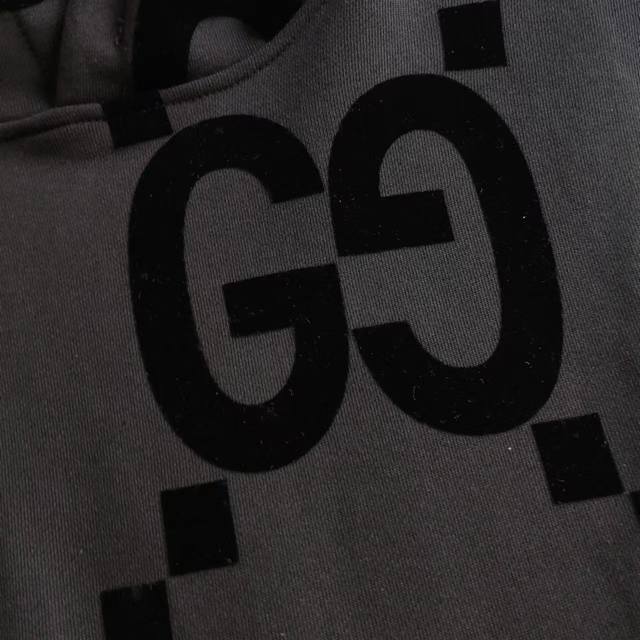 This casual hoodie is meticulously crafted, adorned with a GG flocked effect print throughout, injecting a modern touch into everyday wear. The craftsmanship is undoubtedly exceptional, offering unparalleled comfort