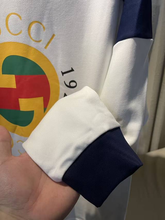 Real shot top version. Official quality. #Gucci##Sports##Retro#Gucci 25 latest patchwork retro sportswear sweatshirt, official original, custom 32-count double yarn pure cotton sweatshirt fabric, 460g, soft and delicate to the touch yet more substantial than ordinary cotton fabric, comfortable, breathable and not easily deformed, uses imported nano printing, precision screen printing makes the print more three-dimensional, clear and detailed, original accessories 1:1 complete with three labels, hand-stitched woven label, replicating the boutique, different from market goods, loose fit, unisex, official quality. Sizes: Xs L. Color: Blue and white patchwork.