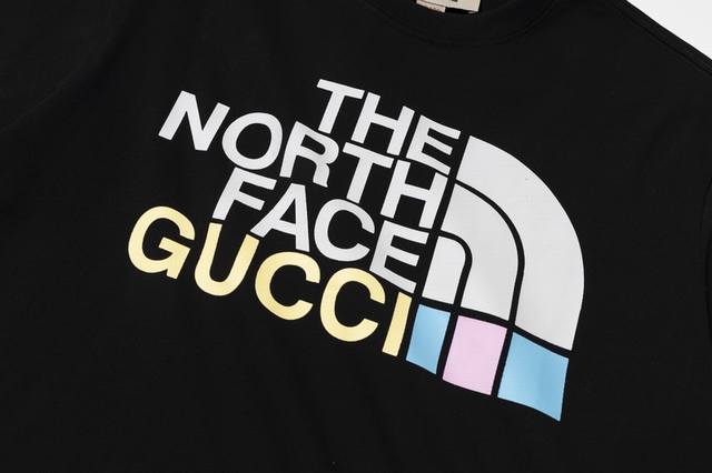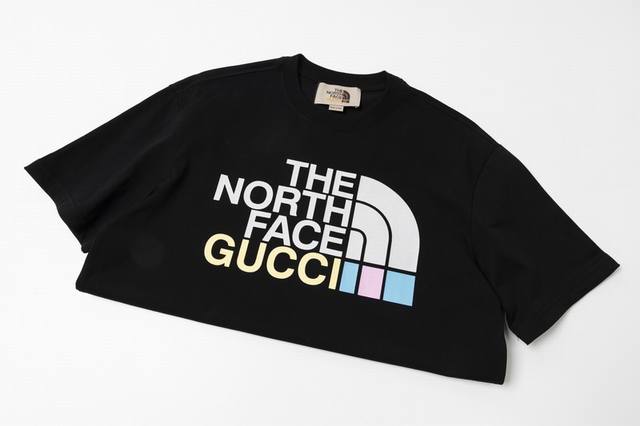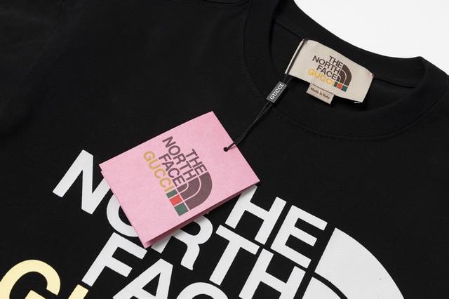 High Quality] This Gucci Gtnf The North Face collaboration short-sleeved T-shirt is made from 16s 100% 240g cotton fabric with a 32s 1x1 cotton cover ribbing. The fabric is custom-dyed with imported dyes, with multiple blends to maximize the original color. The fabric and thread are dyed in the same vat, ensuring no color difference. This is not off-the-shelf fabric; commercial fabric is an exact match to the original color and has the same thickness. 3D full-color scanning ensures the print is reproduced to the highest degree possible. The upper and lower logos are printed with a strong, tactile feel. The print is made from an environmentally friendly, active water-based slurry and primed with an anti-sublimation solution. The finished garment is washable and does not slough. The collar tag is hand-sewn and features an RFID tag. This is a top-tier purchasing agent model, so you can sell it freely without worrying about quality.