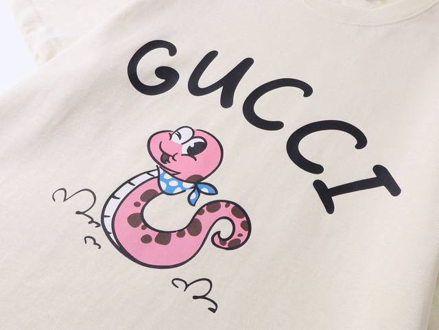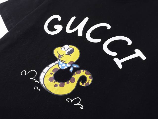 Style No.: 302, Gucci New Arrival! Early Spring Collection for the Year of the Snake - High-weight Short-sleeved Shirt. Made with custom-supplied 100% pure cotton knit fabric, the material is delicate to the touch, thick and textured. The high-density machine weaving process creates a soft, comfortable, and bouncy feel, like cotton wool. It has a crisp texture and looks great on. The exquisite and full-bodied design perfectly showcases the brand's high-end style. It looks great whether worn alone or layered. The loose fit makes it easy to wear. Sizes: S (Recommended for 80-120 lbs), M (Recommended for 120-145 lbs), L (Recommended for 140-165 lbs), XL (Recommended for 160-190 lbs). Available Colors: Apricot, Black.