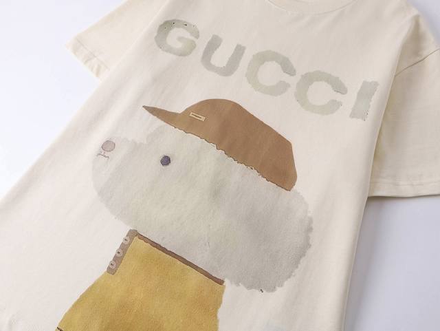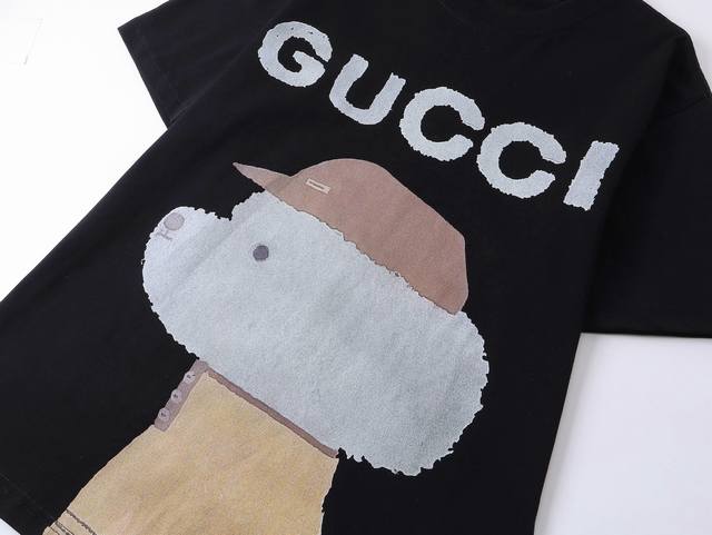 Style No.: 314, Ddd Gucci New Arrival! High-weight short-sleeved T-shirt from the early spring collection with a seamless print. Made from custom-supplied 100% pure cotton knit fabric, the material is delicate to the touch, thick and textured. The high-density machine weaving process creates a soft, comfortable, and bouncy feel, like cotton wool. It has a crisp texture and looks great on. The exquisite and full-bodied design perfectly showcases the brand's high-end style. It looks great whether worn alone or layered. The loose fit makes it easy to wear. Sizes: S (Recommended for 80-120 lbs), M (Recommended for 120-145 lbs), L (Recommended for 140-165 lbs), XL (Recommended for 160-190 lbs). Available colors: Apricot, Black.