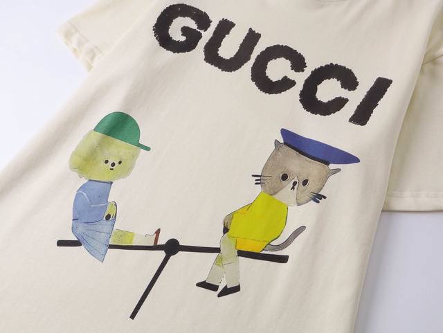 Style No.: 318, Gucci New Arrival! High-weight short-sleeved T-shirt from the early spring collection with a seamless print. Made from custom-supplied 100% pure cotton knit fabric, the material is delicate to the touch, thick and textured. The high-density machine weaving process creates a soft, comfortable, and bouncy feel, like cotton wool. It has a crisp texture and looks great on. The exquisite and full-bodied design perfectly showcases the brand's high-end style. It looks great whether worn alone or layered . The loose fit makes it easy to wear. Sizes: S (Recommended for 80-120 lbs), M (Recommended for 120-145 lbs), L (Recommended for 140-165 lbs), XL (Recommended for 160-190 lbs). Available Color: Apricot.