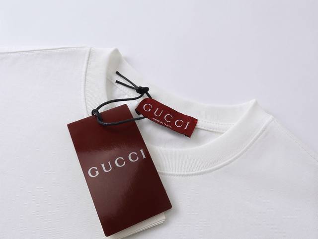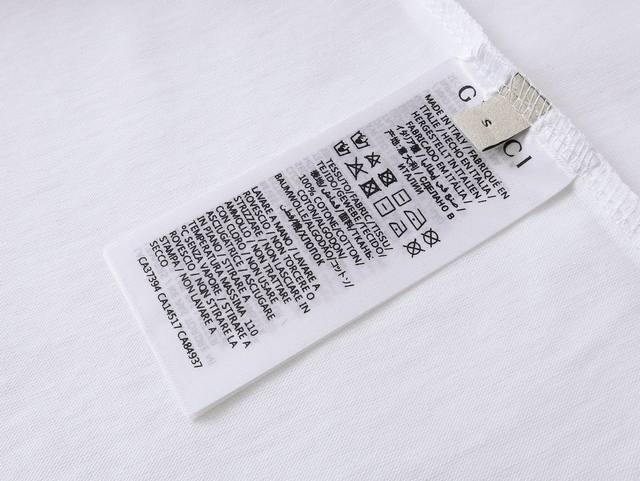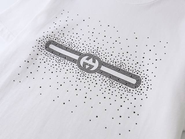 Style No.: 332, Gucci New Arrival! High-weight short-sleeved T-shirt from the early spring collection featuring hot-stamped rhinestones. Made from custom-supplied 100% pure cotton knit fabric, the material is delicate to the touch, thick and textured. The high-density machine weaving process creates a soft, comfortable, and bouncy feel, like cotton wool. It has a crisp texture and looks great on. The exquisite and full-bodied design perfectly showcases the brand's high-end style. It looks great whether worn alone or layered. The loose fit makes it easy to wear. Sizes: S (Recommended for 80-120 lbs), M (Recommended for 120-145 lbs), L (Recommended for 140-165 lbs), XL (Recommended for 160-190 lbs). Available color: White.