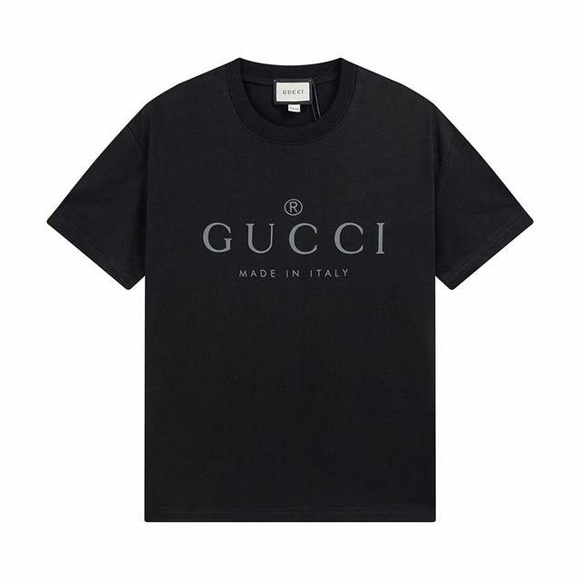 Style No.: 520, Gucci New Arrival! Early Spring Collection High-Weight Short-Sleeve T-Shirt. Made with custom-supplied 100% pure cotton knit fabric, the material is delicate to the touch, thick and textured. The high-density machine weaving process creates a soft, comfortable, and bouncy feel, like cotton wool. It has a crisp texture and looks great on. The exquisite and full-bodied design perfectly showcases the brand's high-end style. It looks great whether worn alone or layered. The loose fit makes it easy to wear. Sizes: S (Recommended for 80-120 lbs), M (Recommended for 120-145 lbs), L (Recommended for 140-165 lbs), XL (Recommended for 160-190 lbs). Available Colors: Apricot, Black.