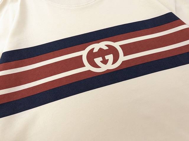 Style No.: 533, Gucci New Arrival! Early Spring Collection High-Weight Short-Sleeve T-Shirt. Made with custom-supplied 100% pure cotton knit fabric, the material is delicate to the touch, thick and textured. The high-density machine weaving process creates a soft, comfortable, and bouncy feel, like cotton wool. It has a crisp texture and looks great on. The exquisite and full-bodied design perfectly showcases the brand's high-end style. It looks great whether worn alone or layered. The loose fit makes it easy to wear. Sizes: S (Recommended for 80-120 lbs), M (Recommended for 120-145 lbs), L (Recommended for 140-165 lbs), XL (Recommended for 160-190 lbs). Available Color: Apricot.