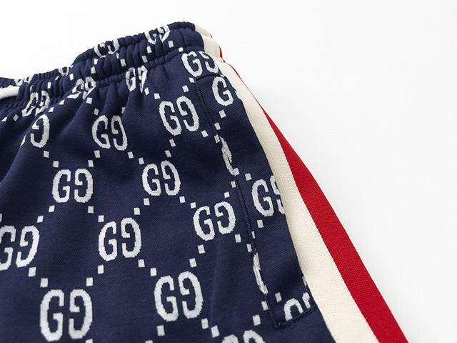 Style No.: 569, Ddd Gucci high-quality summer new arrival, Gucci monogram jacquard fabric, double-sided webbing, casual and versatile unisex shorts, Ddd Sizes: S, M, L, XL. DDD