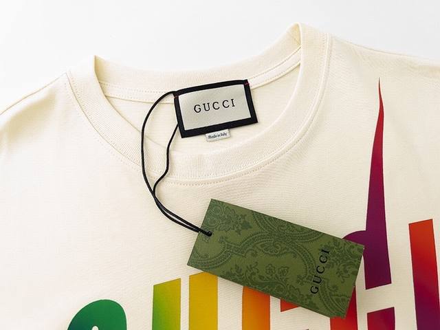 Style No.: 598, Gucci New Arrival! Early Spring Collection High-Weight Short-Sleeve T-Shirt. Made with custom-supplied 100% pure cotton knit fabric, the material is delicate to the touch, thick and textured. The high-density machine weaving process creates a soft, comfortable, and bouncy feel, like cotton wool. It has a crisp texture and looks great on. The exquisite and full-bodied design perfectly showcases the brand's high-end style. It looks great whether worn alone or layered. The loose fit makes it easy to wear. Sizes: S (Recommended for 80-120 lbs), M (Recommended for 120-145 lbs), L (Recommended for 140-165 lbs), XL (Recommended for 160-190 lbs). Available Colors: Apricot, Black.