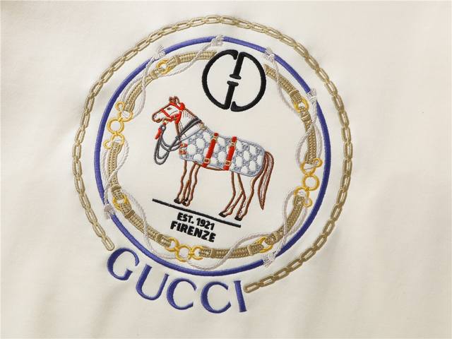 Style No.: 717, Ddd Gucci New Arrival! Autumn/Winter High-Weight Sweatshirt Ddd Made with custom-supplied 100% pure cotton knit fabric, the fabric is delicate to the touch, thick and textured pure cotton. Ddd High-density machine weaving process, as soft and comfortable as cotton wool. Ddd It has a crisp feel and looks great on. Ddd Exquisite and full texture, perfectly presenting the brand's high-end feel, super stylish whether worn alone or layered. Ddd Loose fit, easy to wear! Ddd Sizes: S~~~Recommended for 80-120 lbs Ddd M~~~Recommended for 120-145 lbs Ddd L~~~Recommended for 140-165 lbs Ddd XL~~~Recommended for 160-190 lbs Ddd Available Color: Apricot. Ddd