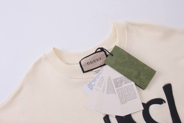 Style No.: 723, Ddd Gucci New Arrival! Autumn/Winter High-Weight Sweatshirt. Ddd Made with custom-supplied 100% pure cotton knit fabric, the material is delicate to the touch, thick and textured. Ddd High-density machine weaving process, as soft and comfortable as cotton wool. Ddd It has a crisp feel and looks great on. Ddd Exquisite and full texture, perfectly presenting the brand's high-end feel. Super stylish whether worn alone or layered. Ddd Loose fit, easy to wear! Ddd Sizes: S~~~Recommended for 80-120 lbs Ddd M~~~Recommended for 120-145 lbs Ddd L~~~Recommended for 140-165 lbs Ddd XL~~~Recommended for 160-190 lbs Ddd Available Colors: Apricot, Black. Ddd
