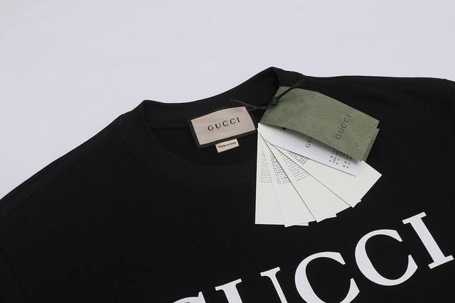 Style No.: 837, Gucci New Arrival! Early Spring Collection High-Weight Short-Sleeve T-Shirt. Made with custom-supplied 100% pure cotton knit fabric, the material is delicate to the touch, thick and textured. The high-density machine weaving process creates a soft, comfortable, and bouncy feel, like cotton wool. It has a crisp texture and looks great on. The exquisite and full-bodied design perfectly showcases the brand's high-end style. It looks great whether worn alone or layered. The loose fit makes it easy to wear. Sizes: S (Recommended for 80-120 lbs), M (Recommended for 120-145 lbs), L (Recommended for 140-165 lbs), XL (Recommended for 160-190 lbs). Available Colors: Apricot, Black.