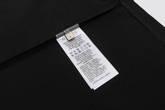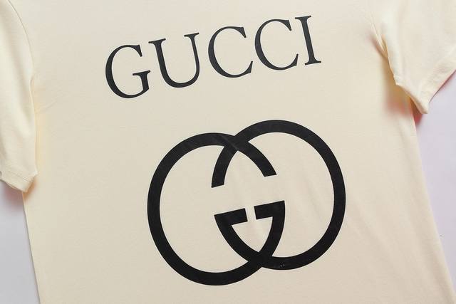 Style No.: 845, Gucci New Arrival! Early Spring Collection High-Weight Short-Sleeve T-Shirt. Made with custom-supplied 100% pure cotton knit fabric, the material is delicate to the touch, thick and textured. The high-density machine weaving process creates a soft, comfortable, and bouncy feel, like cotton wool. It has a crisp texture and looks great on. The exquisite and full-bodied design perfectly showcases the brand's high-end style. It looks great whether worn alone or layered. The loose fit makes it easy to wear. Sizes: S (Recommended for 80-120 lbs), M (Recommended for 120-145 lbs), L (Recommended for 140-165 lbs), XL (Recommended for 160-190 lbs). Available Colors: Apricot, Black.