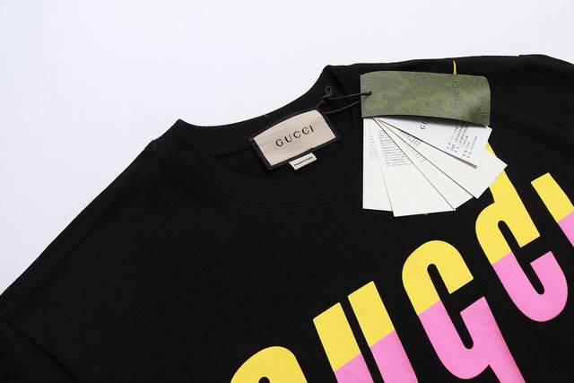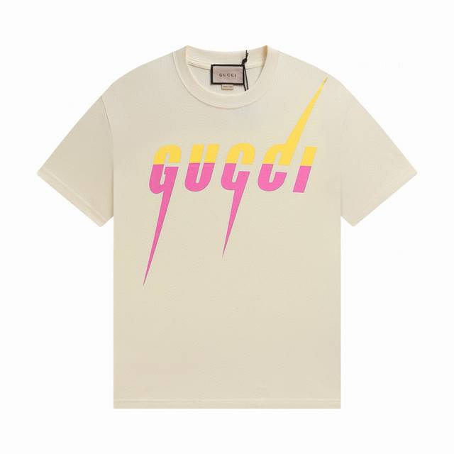 Style No.: 846, Gucci New Arrival! Early Spring Collection High-Weight Short-Sleeve T-Shirt. Made with custom-supplied 100% pure cotton knit fabric, the material is delicate to the touch, thick and textured. The high-density machine weaving process creates a soft, comfortable, and bouncy feel, like cotton wool. It has a crisp texture and looks great on. The exquisite and full-bodied design perfectly showcases the brand's high-end style. It looks great whether worn alone or layered. The loose fit makes it easy to wear. Sizes: S (Recommended for 80-120 lbs), M (Recommended for 120-145 lbs), L (Recommended for 140-165 lbs), XL (Recommended for 160-190 lbs). Available Colors: Apricot, Black.