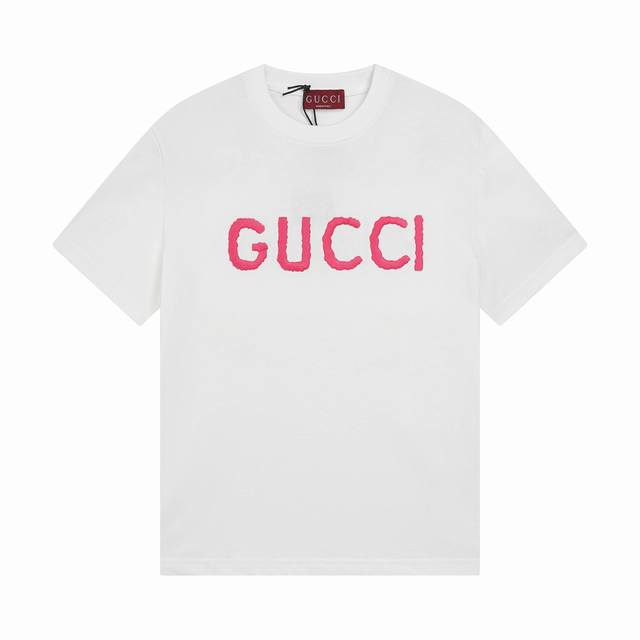 Style No.: 856, Gucci New Arrival! Early Spring Collection High-Weight Short-Sleeve T-Shirt. Made with custom-supplied 100% pure cotton knit fabric, the material is delicate to the touch, thick and textured. The high-density machine weaving process creates a soft, comfortable, and bouncy feel, like cotton wool. It has a crisp texture and looks great on. The exquisite and full-bodied design perfectly showcases the brand's high-end style. It looks great whether worn alone or layered. The loose fit makes it easy to wear. Sizes: S (Recommended for 80-120 lbs), M (Recommended for 120-145 lbs), L (Recommended for 140-165 lbs), XL (Recommended for 160-190 lbs). Available Colors: White, Apricot, Black.